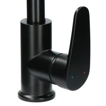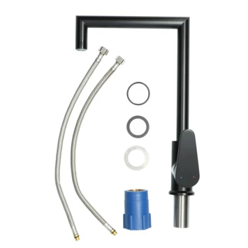 De Absolut keukenkraan Fasso met hendel Zwart is een blikvanger in je keuken met de hoge hoekige U-vormige uitloop. De strakke vormgeving en mat zwarte afwerking passen perfect in jouw landelijke of industriële keuken. De kraan kun je ook verkrijgen in chroom of grafiet. Met de kraan ga je ook in de tijd mee door de ingebouwde waterbespaarder in de sproeikop. Zo bespaar je op je waterverbruik. Dat is niet alleen goed voor het milieu, maar ook voor je portemonnee. De hoogte van maar liefst 48 cm in combinatie met de 360° draaibaarheid van de uitloop zorgen dat je veel ruimte in je gootsteen hebt. Handig als je een grote pan moet vullen! Met de eenhendelbediening meng je eenvoudig met 1 hand het water naar de gewenste temperatuur. De keramische schijven maken draaien soepel en nauwkeurig en vergen bovendien weinig onderhoud. Ook veeg je kalk eenvoudig met je vingers van de uitloop af doordat vuil en kalk zich niet makkelijk hecht aan de siliconen noppen in de sproeikop. Met de meegeleverde flexibele aansluitslangen en bevestigingsmateriaal sluit je deze kraan eenvoudig zelf aan. Op de kraan krijg je 5 jaar garantie.