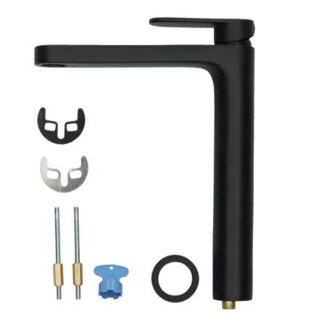 De Absolut wastafelkraan Iode hoge uitloop met hendel en waste Zwart is een elegante aanvulling in je keuken met de hoge L-vormige uitloop. De platte vorm en mat zwarte afwerking hebben een ingetogen uitstraling en passen altijd in jouw interieur, of die nu modern, landelijk of industrieel is. De wastafelkraan kun je ook in een medium model verkrijgen. De hoogte van maar liefst 32 cm zorgt ervoor dat je veel ruimte in je wastafel hebt. Handig als je je haar wil wassen! Met de eenhendelbediening meng je eenvoudig met 1 hand het water naar de gewenste temperatuur. De keramische schijven maken draaien soepel en nauwkeurig en vergen bovendien weinig onderhoud. Bij de kraanset krijg je ook een waste met afvoerplug; deze bedien je met een hendel aan de achterkant van de kraan. Zo hoef je nooit meer met je handen in te heet of vies water om de afvoer open te zetten. Met de meegeleverde flexibele aansluitslangen, bevestigingsmateriaal, waste met wasteinrichting, afvoerplug en montagehandleiding kun je de kraan heel eenvoudig zelf aansluiten. Op de kraan krijg je 5 jaar garantie.
