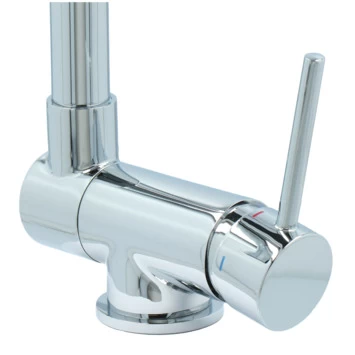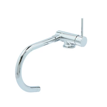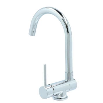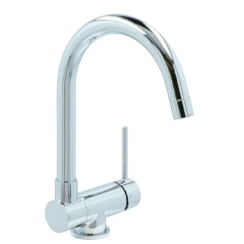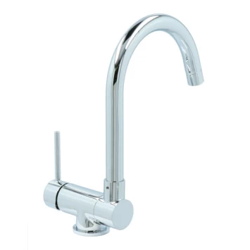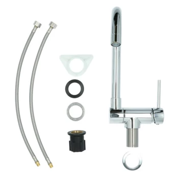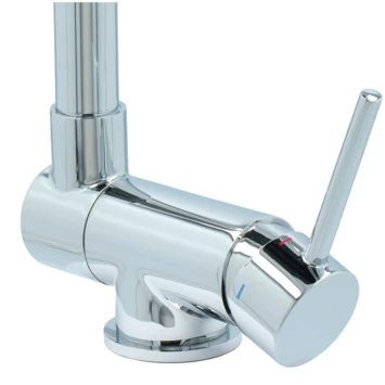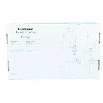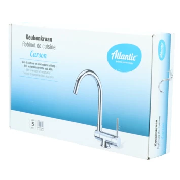 De Atlantic keukenkraan Carson met hendel Chroom bestaat uit een glanzende keukenkraan van 30 cm hoog met 2 flexibele aansluitslangen, bevestigingsmateriaal en montagehandleiding. De Carson keukenkraan heeft een draaibare uitloop van 360° waarmee je eenvoudig plaats maakt bij je gootsteen. Ook kun je de uitloop tot 90° naar beneden inklappen, wat heel handig is als je bijvoorbeeld het raam achter de kraan open wil zetten. Met de eenhendelbediening draai je met 1 hand de kraan naar de gewenste temperatuur. Je bespaart water door de ingebouwde eco-klik. Een ingebouwde weerstand in de hendel zorgt ervoor dat je de kraan niet direct op de hoogste straalstand zet. Wens je toch een hardere straal, dan zet je de hendel verder open. Aan de anti-kalk perlator hecht kalk zich moeilijk vast en veeg je er met de hand af. Deze keukenkraan heeft een mooie glanzende chromen afwerking. Gebruik alleen water en een zachte doek om de kraan schoon te maken. Gebruik geen schurend, bijtend, azijnhoudend of agressief schoonmaakmiddel. Op de kraan heb je 5 jaar garantie.