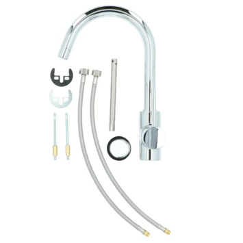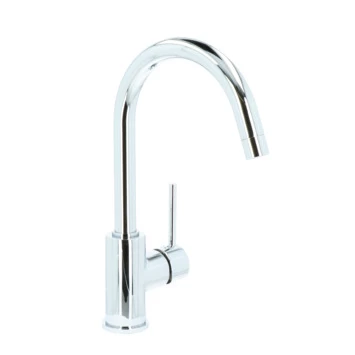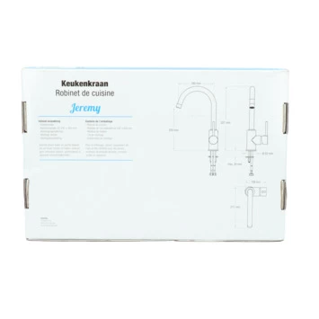 De Atlantic keukenkraan Jeremy met hendel Chroom bestaat uit een verchroomde keukenkraan van 32,7 cm hoog met 2 flexibele aansluitslangen, bevestigingsmateriaal, montage sleutel en montagehandleiding. De Jeremy keukenkraan heeft een draaibare uitloop van 360° waarmee je eenvoudig plaats maakt bij je gootsteen. Met de eenhendelbediening draai je met 1 hand de kraan naar de gewenste temperatuur. Je bespaart water door de ingebouwde eco-klik. Een ingebouwde weerstand in de hendel zorgt ervoor dat je de kraan niet direct op de hoogste straalstand zet. Wens je toch een hardere straal, dan zet je de hendel verder open. Aan de anti-kalk perlator hecht kalk zich moeilijk vast en veeg je er met de hand af. Deze keukenkraan heeft een mooie glanzend chromen afwerking. Gebruik alleen water en een zachte doek om de kraan schoon te maken. Gebruik geen schurend, bijtend, azijnhoudend of agressief schoonmaakmiddel. Op de kraan heb je 5 jaar garantie.