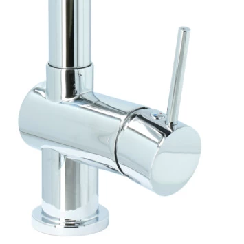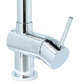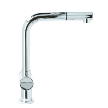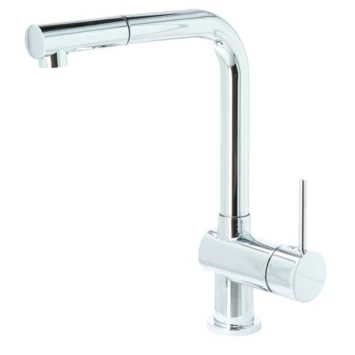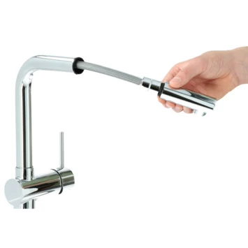 De Atlantic keukenkraan Stephen met hendel en uittrekbare sproeikop Chroom bestaat uit een chromen keukenkraan, 2 flexibele aansluitslangen, bevestigingsmateriaal, montage sleutel en montagehandleiding. De Stephen keukenkraan heeft een draaibare uitloop van 360° waarmee je eenvoudig plaats maakt bij je gootsteen. Ook de hoogte van maar liefst 31 cm geeft veel ruimte in de gootsteen. Handig als je bijvoorbeeld een grote pan of emmer wil vullen. En als je veel vaat hebt af te spoelen, trek je eenvoudig de sproeikop uit de kraan. Met de eenhendelbediening draai je met 1 hand de kraan naar de gewenste temperatuur. Draaien doe je soepel en nauwkeurig door de keramische schijven, die bovendien weinig onderhoud vergen. Je bespaart water door de ingebouwde eco-klik. De ingebouwde weerstand in de hendel zorgt ervoor dat je de kraan niet direct op de hoogste straalstand zet. Daarmee bespaar je dus op je waterverbruik. Goed voor het milieu en voor je portemonnee. Wens je toch een hardere straal, dan zet je de hendel wat verder open. Deze kraan heeft daarnaast ook nog ingebouwde keerkleppen die voorkomen dat vuil water terug de leiding instroomt. Aan de anti-kalk perlator hecht kalk zich moeilijk vast en veeg je er met de hand af. Deze rechte keukenkraan met hoge L-uitloop heeft een prachtig glanzende chromen afwerking en past met de strakke vormgeving in elk modern keukeninterieur. Gebruik alleen water en een zachte doek om de kraan schoon te maken. Gebruik geen schurend, bijtend, azijnhoudend of agressief schoonmaakmiddel. De kraan heeft het Belgaqua keurmerk en 5 jaar garantie.
