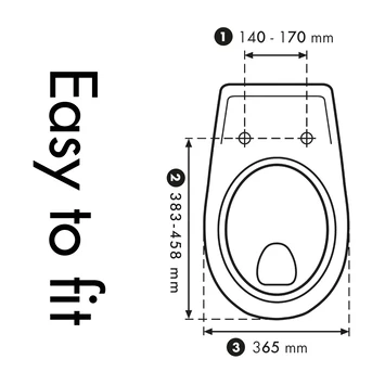 Door de verstelbaarheid in de scharnieren past deze wc-bril op de meeste gangbare toiletpotten met D-vorm, toch raden we je aan de lijntekening goed te bekijken zodat hij netjes past op jouw pot. Tenslotte monteer je de zitting met het slimme ‘Topfix’ bevestigingssysteem eenvoudig en snel vanaf de bovenkant. Makkelijker bestaat niet.