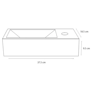 De kraan en de sifon zijn niet meegeleverd. De fontein zelf is gemaakt van marmer en 37.5×18.5×9.5 cm.Â