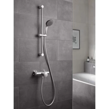 De GROHE douchekraan Start Classic met hendel Chroom 15cm is een functionele douchekraan met een handige hendelbediening. Door de GROHE Longlife keramische schijven in de kraan, draai je de hendel soepel en nauwkeurig naar de door jou gewenste temperatuur en waterstraal. De temperatuur kun je hiermee vooraf al instellen. Met de ingebouwde keerkleppen voorkom je dat er vuil water terug de leiding instroomt. De douchekraan met hartafstand van 15 cm installeer je eenvoudig zelf op elke universele waterleiding met de meegeleverde S-koppelingen, rozetten, bevestigingsmateriaal en montagehandleiding. Ook de doucheaansluiting is universeel met een maat van 1/2″, daar kun je bijna iedere doucheslang makkelijk op draaien. De douchekraan past met zijn tijdloze vormgeving en chromen afwerking in elk interieur. Kortom: een functionele en tijdloze aanwinst in jouw badkamer! Op de douchekraan krijg je 5 jaar garantie. In dit model is ook een badkraan verkijgbaar.