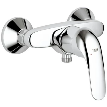 Een douchemengkraan met een tijdloos en eenvoudig ontwerp, dat is de GROHE douchekraan Swift met hendel Chroom 15 cm. De douchekraan bestaat uit een chromen douchekraan met hartafstand 15 cm, 2 S-koppelingen, 2 rozetten en een montagehandleiding. Deze mooie krasbestendige GROHE StarLight® chromen kraan heeft een handige eenhendelbediening, waarmee je eenvoudig met 1 hand de kraan naar de gewenste temperatuur draait. Met de GROHE SilkMove® technologie doe je dat extra gemakkelijk: de grote instelhoek en unieke keramische schijven zorgen ervoor dat je de kraan comfortabel en nauwkeurig kan bedienen. In de kraan zijn keerkleppen geïntegreerd, die zorgen ervoor dat er geen vuil water terug de leiding in stroomt. De waterstroom kun je beperken door bij de installatie de doorstroombegrenzer in te stellen. Daarmee bespaar je op je waterverbruik. Het monteren van de kraan doe je eenvoudig zelf met het meegeleverde materiaal. Met de handleiding is dat zo gebeurd! De kraan heeft het Belgaqua keurmerk en bij aankoop profiteer je ook nog eens van 5 jaar fabrieksgarantie.