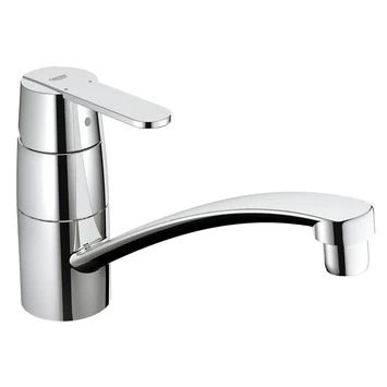 De GROHE keukenkraan Get met hendel Chroom is een praktische keukenkraan met hendelbediening. Dankzij de GROHE SilkMove keramische schijven draai je de hendel soepel met 1 hand vooraf naar de gewenste watertemperatuur en naar de juiste waterstraal. Keramische schijven zijn duurzaam en vergen bovendien weinig onderhoud. De keukenkraan is laag met 15,2 cm, maar doordat je de uitloop 140° kan draaien, maak je toch snel wat ruimte in je gootsteen. De waterstroom kun je beperken door bij de installatie de doorstroombegrenzer in te stellen. Daarmee bespaar je op je waterverbruik. De kraan is afgewerkt met de GROHE StarLight chroomlaag, die krasbestendiger is dan reguliere chroomlagen. Installeren doe je eenvoudig en snel met de meegeleverde flexibele aansluitslangen, bevestigingsmateriaal en het QuickFix snelmontagesysteem, waarvoor je maar 1 gat hoeft te boren voor de montage. Met de tijdloze vormgeving past deze kraan altijd in jouw keukeninterieur. Kies je voor deze kraan, dan krijg je 5 jaar garantie en geniet je bovendien van een praktische kraan van hoge kwaliteit voor een betaalbare prijs!