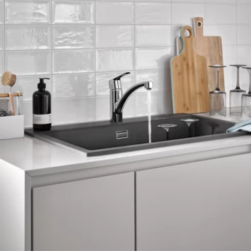De iconische keukenfavoriet GROHE Start eengreeps keukenkraan is opnieuw ontworpen om het gebruik nog aangenamer en gemakkelijker te maken en vormt hierdoor een ideale upgrade. Deze designklassieker is opgefrist om te voldoen aan de eisen van moderne keukens en heeft nu een slank, modern profiel en beschikt over meer gebruikscomfort. Deze keukenkraan is ontworpen voor eengatsinstallatie en de lage uitloop kan soepel 140° worden gedraaid, wat meer flexibiliteit biedt aan de spoelbak zonder dat je op de muren spettert. De mousseur kan eenvoudig worden verwisseld met behulp van slechts een muntje – er komt dus geen gereedschap aan te pas. Binnenin zorgt de technologie van het GROHE SilkMove ES-cartouche voor een levenslange soepele en nauwkeurige bediening terwijl GROHE Zero geïsoleerde binnenwaterwegen ervoor zorgt dat je drinkwater lood- en nikkelvrij is. Een instelbare debietbegrenzer bespaart water en geld terwijl een geïntegreerde temperatuurbegrenzer verbranding voorkomt. De glanzende GROHE StarLight chroom afwerking is krasbestendig en zorgt voor een oogverblindend oppervlak dat lang meegaat. Met de GROHE QuickFix Plus-set kan de keukenkraan eenvoudig en snel worden geïnstalleerd, zonder dat je gereedschap nodig hebt. Voor deze kraan wordt een minimale druk van 1,0 bar aanbevolen.