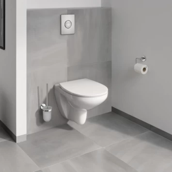 Het Grohe Wandcloset Bau is een keramische toiletpot en een ideale keuze voor een herinrichting of upgrade van jouw badkamer. Ontworpen met een ingetogen stijl en strakke, slanke lijnen, wordt deze aan de wand te monteren wc geleverd met een zitting en klep met de gezinsvriendelijke soft close-functie die ervoor zorgt dat ze langzaam en soepel bewegen, waardoor klepperende geluiden worden vermeden en kinderen niet bekneld raken met hun vingers. De snelontgrendelingsfunctie van de zitting maakt het schoonmaken van elke hoek van het keramiek gemakkelijk – de zitting is met een scharnier bevestigd dat snel kan worden losgemaakt. Het onderhoudsvriendelijke randloze ontwerp van de wc zorgt ervoor dat ziektekiemen zich nergens kunnen verbergen en garandeert verbeterde spoelprestaties. Het toilet heeft een horizontale afvoer en een spoelvolume van 6/3 l.