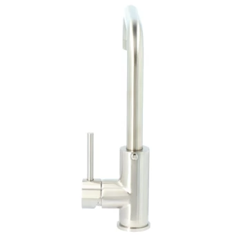 De Handson Olivier keukenkraan is een éénhendel keukenkraan met een strak afgewerkt design. Het feit dat deze kraan één greep heeft maakt het schakelen tussen warm en koud water zeer eenvoudig. Daarnaast beschikt de hendel over keramische schijven die de bediening versoepelen. Keukenkranen met keramische schijven hebben amper tot geen onderhoud nodig. De uitloop van deze kraan is draaibaar en relatief hoog. Extra gemak bij het vullen van grote bannen dus.