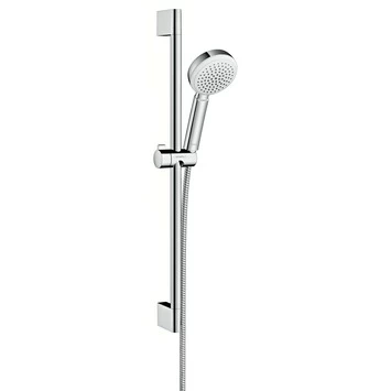 Geniet van een ontspannende douche-ervaring met de Hansgrohe Doucheset MyClub Porter met Glijstang voorzien van de Crometta 100 1 jet handdouche. De XXL douchekop met 100 mm doorsnede biedt groots doucheplezier in de badkamer. De brede en krachtige Rain regenstraal omhult het lichaam met een ware waterdeken. Dankzij de QuickClean anti-kalkfunctie kan kalk en vuil eenvoudig met de hand of een doek van de siliconen noppen van de douchekop worden weggewreven. Het schuifstuk is 90° instelbaar en is daardoor naar links, rechts, omhoog en omlaag te draaien. Deze glijstang beschikt over een KIWA-certificaat. Hierdoor ben je verzekerd van kwaliteit, betrouwbaarheid en duurzaamheid.