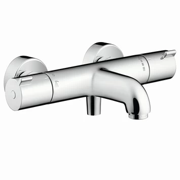 De Hansgrohe Thermostatische Badkraan MyFox Chroom 15 cm kenmerkt zich door zijn stijlvolle ontwerp en is daardoor een prachtige blikvanger in iedere badkamer. Dankzij de twee metalen handgrepen is de mengkraan eenvoudig en stabiel te bedienen en de watertemperatuur is gemakkelijk in te stellen. De thermostaat is zeer veilig dankzij de SafetyStop temperatuurbeveiliging op 40°C. De kans dat de gebruiker de temperatuurbegrenzing door de 40°C draait is met deze instelling kleiner, waardoor de kans op verbranding aan heet water minder groot wordt. Ook kan vooraf de maximale warm water temperatuur worden ingesteld met de Safetyfunctie en wordt de kraan niet heet aan de buitenkant. Extra veilig voor jong en oud! De kraan beschikt over een uitspoelbare vuilfilter waardoor hij optimaal beschermd blijft tegen vuil uit leidingen.
