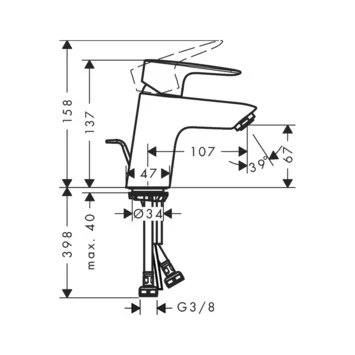 | Lengte flexibele aansluitslang | 39.8 cm |