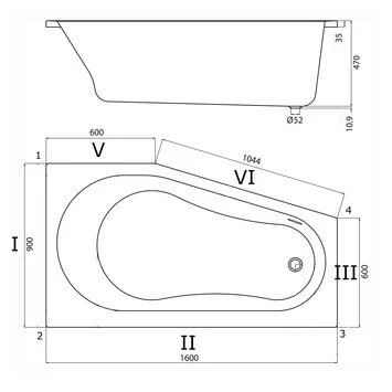 Sealskin Bad Optimo Compact Rechts Acryl 90x160x48 Cm