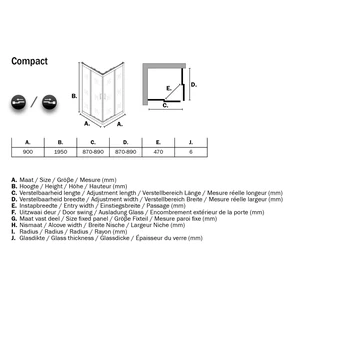 Deze cabine heeft een verstelbaarheid buitenzijde profiel van 87 tot en met 89 cm.