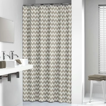 Het Sealskin Douchegordijn Motif 180×200 cm Zand is een strak vormgegeven douchegordijn dat er voor zorgt dat de rest van je badkamer netjes droog blijft tijdens het douchen. De Zandkleurige gehoekte banen op het douchegordijn wisselen elkaar af in een mooi ritme.