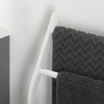 Dit Sealskin Modern handdoekrek is handig in gebruik. Je handdoeken hebben een mooie plek en daarnaast kan het plankje gebruikt worden voor cosmeticaspullen of om je sierraden op te leggen.