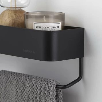 Sealskin Plank- en handdoekhouder Brix Zwart is een handdoekhouder met opbergplank inéén, die je in de badkamer kunt ophangen. Met de bijgeleverde schroeven en montagehandleiding schroef je het rek makkelijk zelf aan de muur. De handdoekhouder met plank meet 35 cm breed, 10 cm hoog en 8 cm diep. Handig om je handdoek op te kunnen hangen én je toiletartikelen in te bewaren. Zo heb je alles binnen handbereik. Dit handdoekrek is niet alleen functioneel, ook is het met de zwarte metalen afwerking een echte aanvulling voor je landelijke of industriële badkamer. In de Brix-serie kun je ook andere bijpassende producten kopen bij GAMMA.