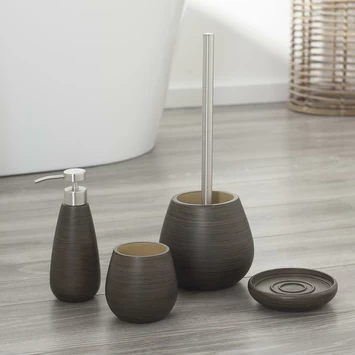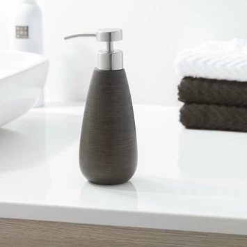 Voor een natuurlijke uitstraling in je badkamer kies je voor de Miyagi serie. De accessoires zijn uitgevoerd in een zware kwaliteit polyresin met hout dessin. De Tiger Zeepdispenser Miyagi Hoog Wood is eenvoudig te reiningen met een vochtige doek.