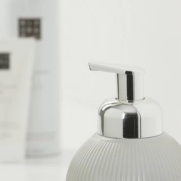 De Sealskin Zeepdispenser Convex Lichtgrijs is gemaakt uit keramiek. De afwerking van dit zeeppompje is een lichtgrijze pasteltint en heeft een reliëf in de vorm van verticale gebogen lijnen. Het pompje is handmatig te bedienen en de dispenser is navulbaar. Deze Scandinavische trend past in elke badkamer. Vervolledig deze Convex serie van Sealskin met de bijhorende beker en toiletborstel met houder. Je vindt deze sanitaire accessoires ook in andere pasteltinten, nl. lichtaqua en lichtroze.