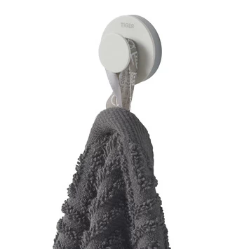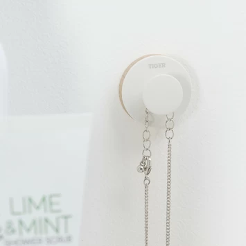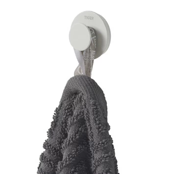 De Tiger Haak Urban Klein Wit is uitgevoerd in de kleur mat wit en wordt geleverd met twee decorringen. De decorringen, in de kleur licht eiken en grijs, maken het mogelijk een subtiel kleuraccent toe te voegen. Het is ook mogelijk de haak zonder de decorring te monteren waardoor het zeer eenvoudig is om het product aan de gewenste stijl aan te passen. De haak is voorzien van een krachtige dubbelzijdige tape waardoor montage op iedere gladde, stevige ondergrond zeer eenvoudig is. De Urban serie bevat tevens een grote haak, maar ook een groot aantal aanvullende accessoires voor de badkamer en toiletruimte. Alle in dezelfde stijl. De artikelen uit de serie zijn ook in de kleur mat zwart verkrijgbaar, waarbij natuurlijk ook weer diverse decorringen worden meegeleverd.