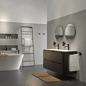 De Noon serie uit de premium collectie van Tiger is een luxe accessoire serie waarin design, kwaliteit en functionaliteit concessieloos samen gaan. De matzwarte kleur in combinatie met de ronde vormen geven de accessoires een krachtige uitstraling die naadloos aansluit bij de inrichting van de moderne en industriële badkamer en toilet.