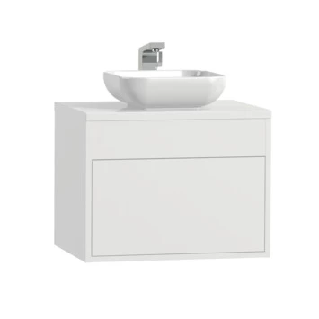 Het Tiger Helsinki badkamermeubel is een simplistisch, modern en greeploos meubel in Scandinavisch design. De wastafelonderkast is voorzien ruime lades waarin alle badkamerspullen overzichtelijk opgeborgen kunnen worden. Voor extra comfort is deze onderkast voorzien van handige ‘push to open’ lades waardoor ze al middels één simpele aanraking openen. Door de mooie heldere witte kleur krijgt het meubel een tijdloze uitstraling. Het houten wasblad is reeds voorzien van een uitsparing voor kraan en waskom. De elegante, onderhoudsarme keramische waskom maakt de set compleet.