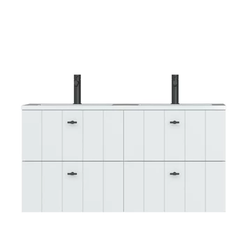 Tiger Maryport Badkamermeubelset 120 Cm Mat Wit Met Wit Glanzende Polybeton Wastafel En Matzwarte Grepen