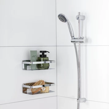 De doucheset Valencia van Tiger bestaat uit een handdouche, doucheslang en -stang met handdouchehouder en verstelbare muursteunen. De handdouche met een diameter van 7,5 cm heeft 3 straalstanden. Door de toepassing van Neoperl® technologie bespaar je tot 40% water. Deze technologie zorgt er met een dynamische o-ring voor dat er altijd een constante hoeveelheid water doorgelaten wordt. Bij een hoge druk wordt veel water bespaard, bij lage druk wordt het comfort juist verhoogd door lucht toe te voegen aan het uitstromende water. Je bespaart dus water en je doucht altijd comfortabel. De douchekop draai je naar keuze naar de standen vol, bruisend of massage. Met de houder stel je eenvoudig de hoogte van de handdouche in. De ronde douchekop is uitgevoerd in chroom. Door de siliconen nopjes kan je kalk makkelijk met de hand afvegen. Doordat 1 muursteun verstelbaar is, kun je de set over je oude boorgaten vastschroeven. De doucheslang heeft een universele 1/2″aansluiting en past op elke douchekraan. Dit product is onderdeel van het Splash eco assortiment: een Tiger lijn met waterbesparende producten.