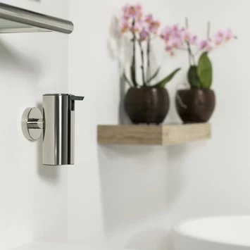 De Tiger Zeepdispenser Boston Hangend Glanzend RVS voor het toilet van de accessoire serie Boston is uitgevoerd in glanzend RVS, en is ook verkrijgbaar in geborsteld RVS. De zeepdispenser bevat een uitneembare kunststof binnenfles, dit vereenvoudigt het vullen en het schoonmaken. Dit product kan aan de wand worden geschroefd, maar kan ook met behulp van Tigerfix 1 op een gladde en harde ondergrond geplakt worden. Je hoeft dus niet te boren. (Tigerfix is los verkrijgbaar). Er zijn van deze serie diverse sanitair accessoires verkrijgbaar, waaronder verschillende maten Boston zeepdispensers. Dit product maakt deel uit van het Boston totaalconcept, dat verder bestaat uit kranen, badmeubelen, douche accessoires en douchecabines, alles in de Boston stijl.