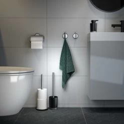 Tiger Tune Toiletborstelhouder Geborsteld RVS/mat Zwart Met Kunststof Voetjes Voor Grondbescherming