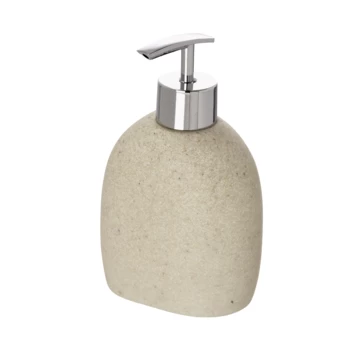 Met de zeepdispenser Puro beige in natuursteenlook creëer je een elegante touch toe aan jouw ruimte. De zeepdispenser kan gevuld worden met maximaal 290ml vloeibare zeep of waslotion. De Puro badkamercollectie is gemaakt van Polyresin ofwel Polystone; een mix van gemalen natuursteen wat wordt vermengd met een vloeibare kunsthars. De zeepdispenser is daardoor zo hard als steen, vochtbestendig en kleurecht. Ideaal om in je toilet of badkamer te gebruiken. De naturelkleurige zeepdispenser staat ook mooi in de keuken als afwasmiddeldispenser. De zeepdispenser kan stijlvol gecombineerd worden met bijpassende producten uit de Puro serie.